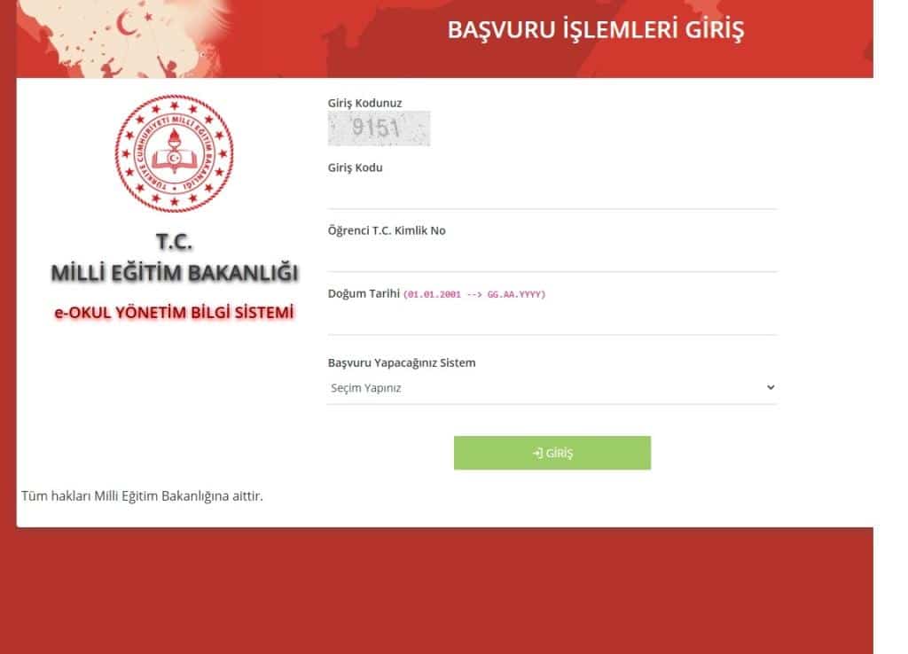 3.Adım Açılan Başvuru İşlemleri Giriş Sayfasından Öğrenci bilgilerini gir